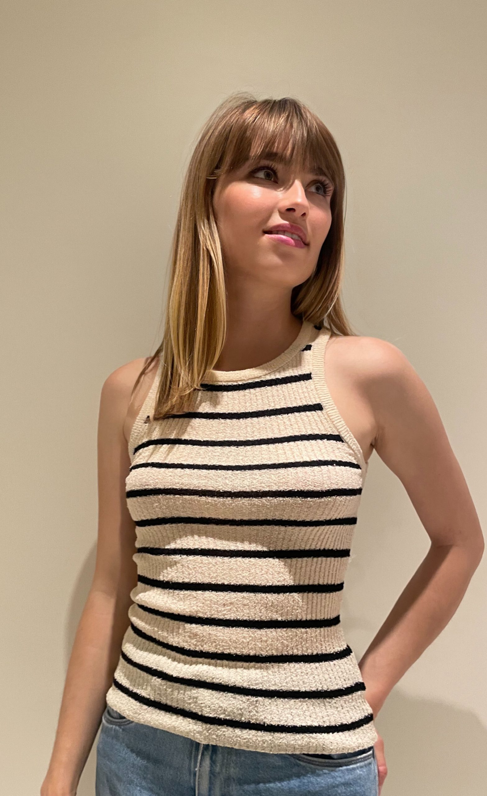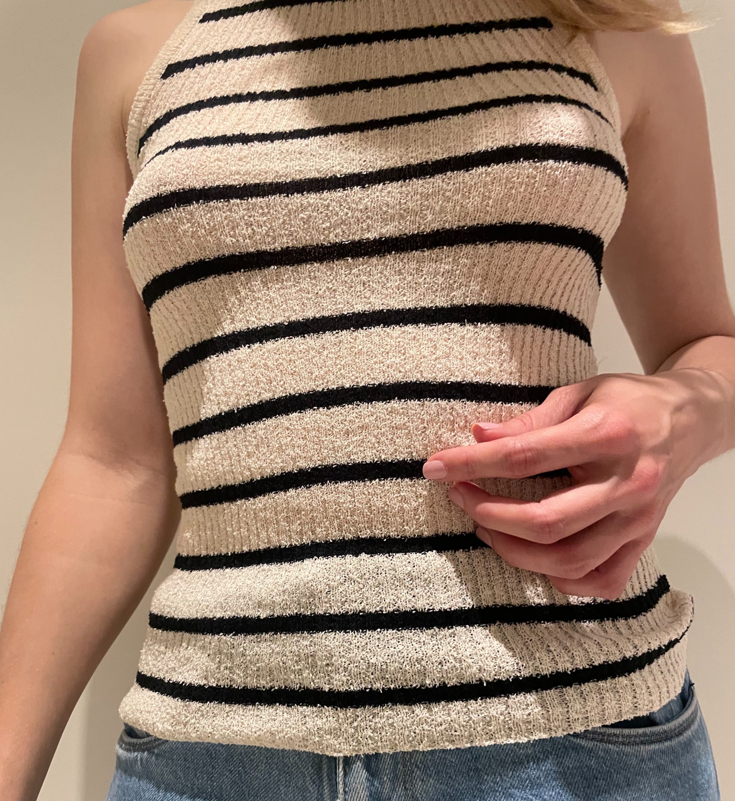 Ajoutez une touche de sophistication à votre style avec notre haut top à rayures beige et noir. Ce vêtement polyvalent est parfait pour toutes les saisons et toutes les occasions, grâce à son design classique et élégant. Fabriqué à partir d’un tissu léger et confortable, il offre une coupe moderne et flatteuse qui met en valeur votre silhouette.